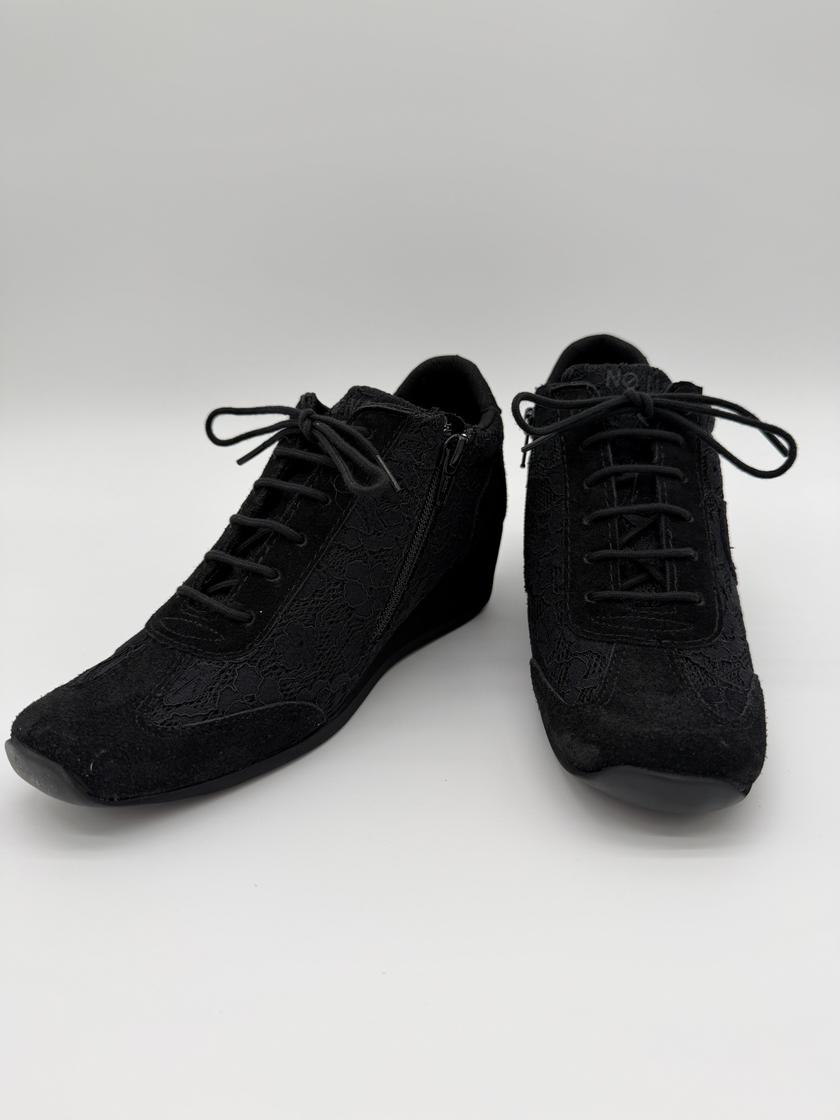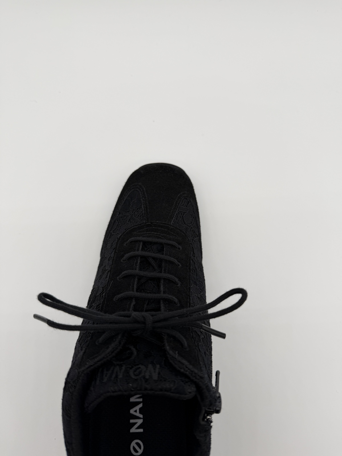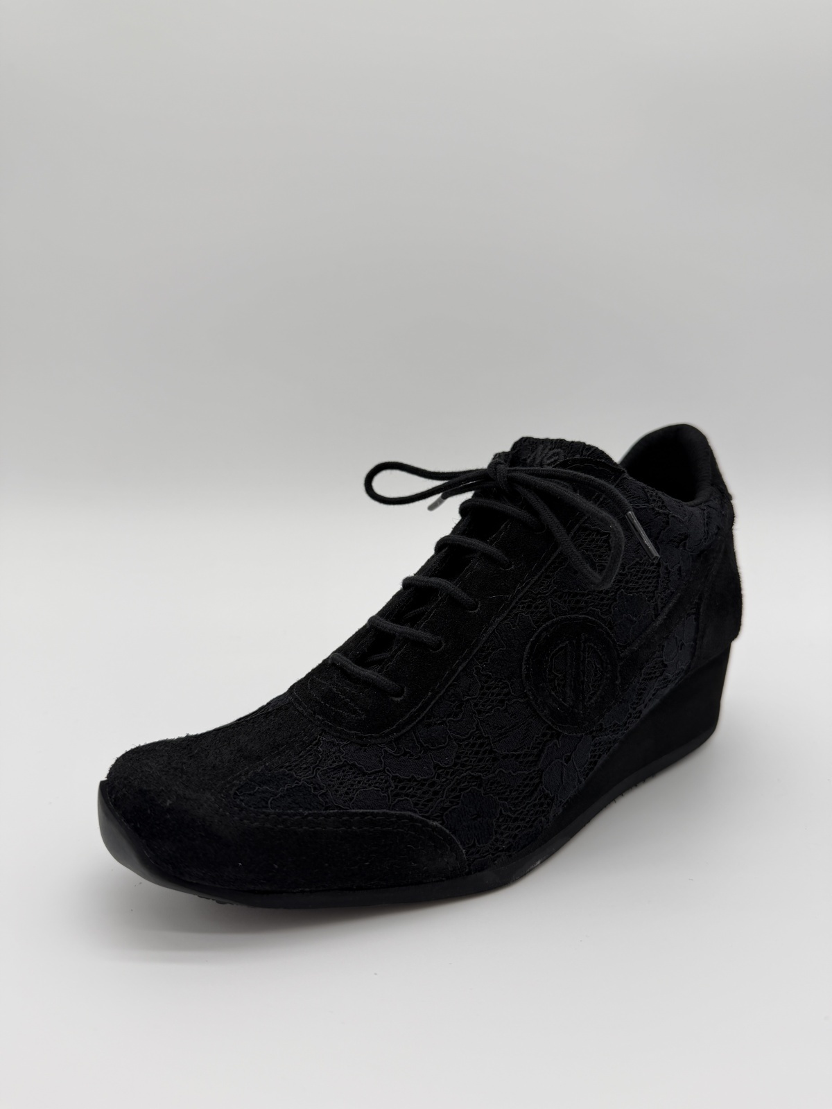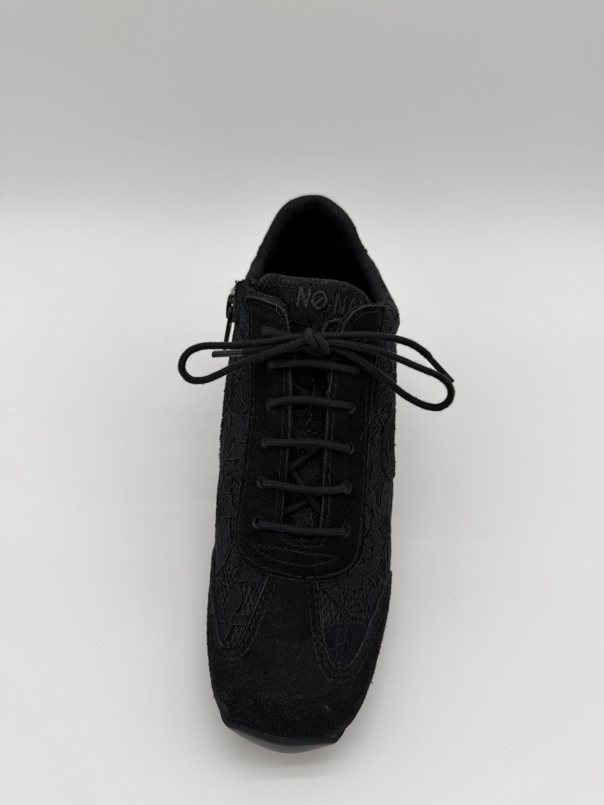 YOKO ZIP JOGGER - ブラックのレース&スエードをまとった上品な一足