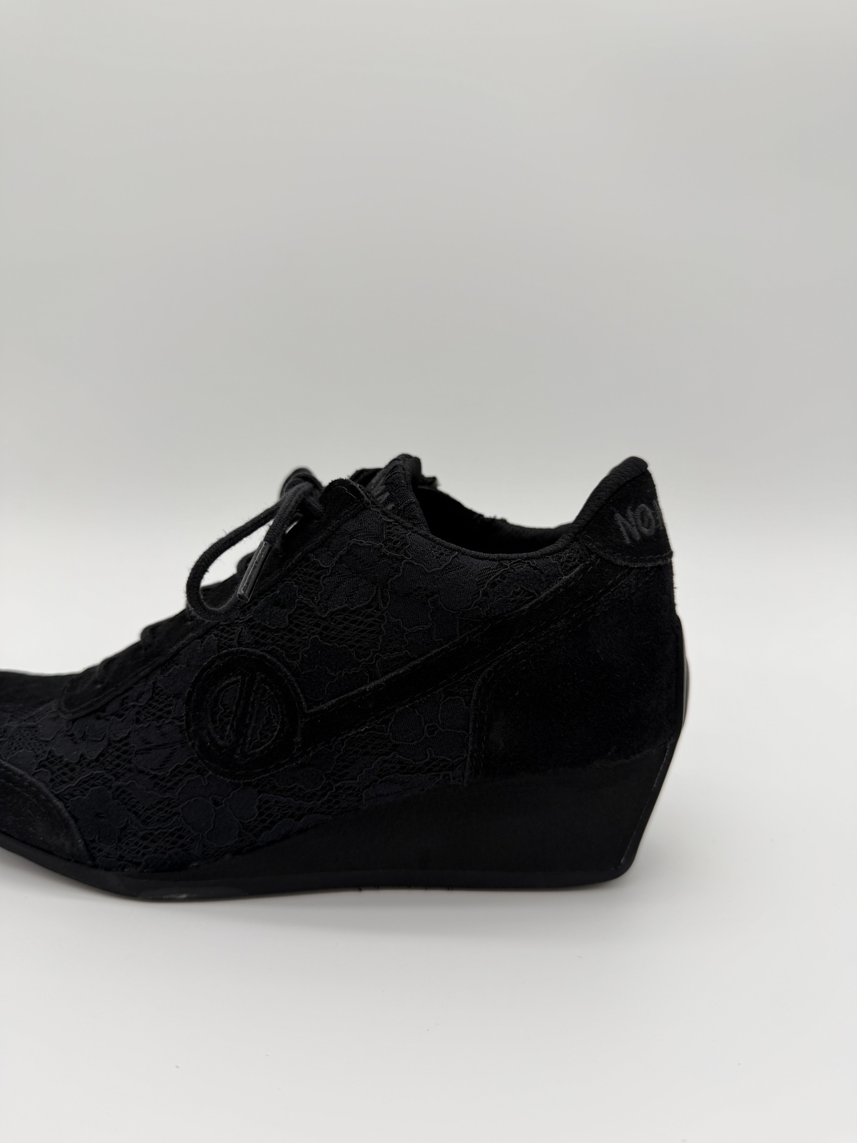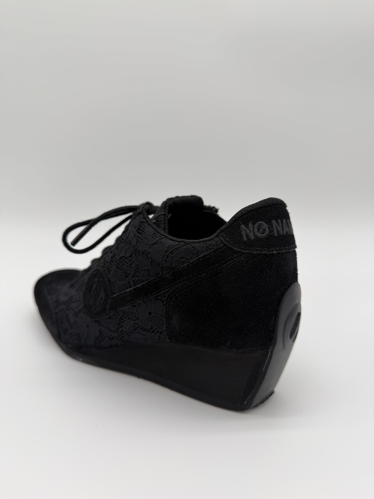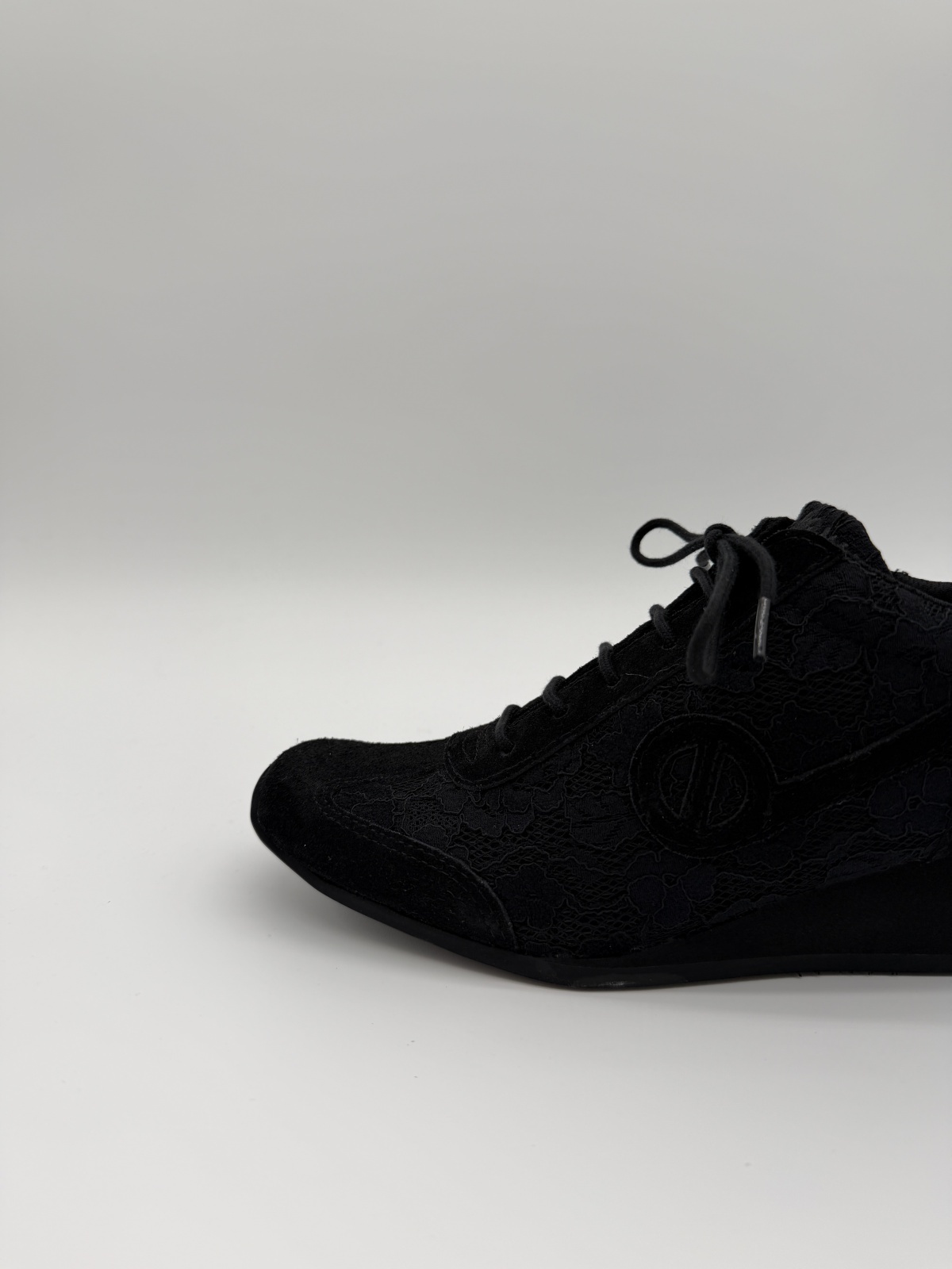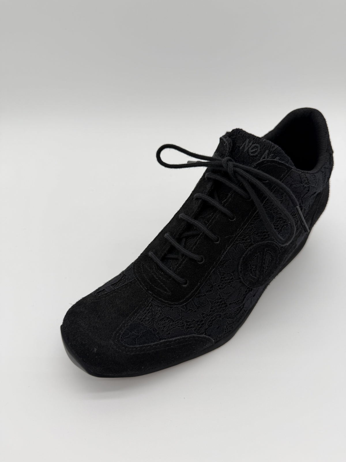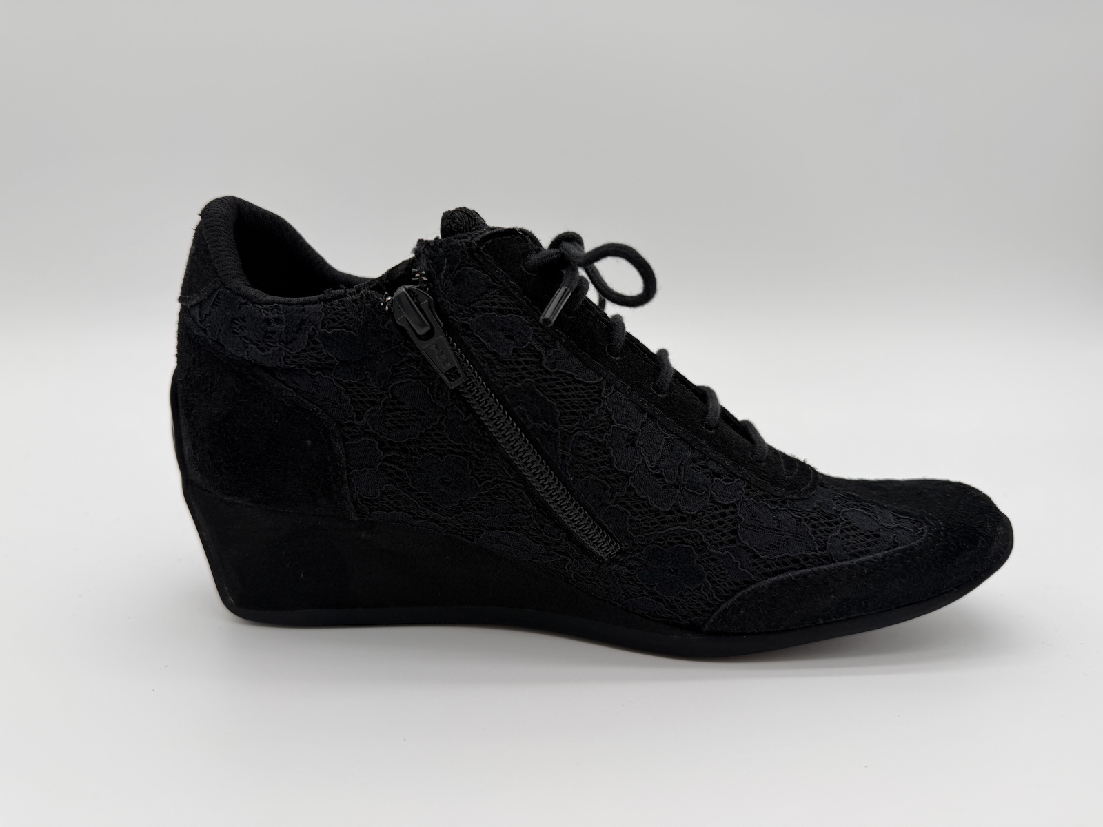YOKO ZIP JOGGER - ブラックのレース&スエードをまとった上品な一足