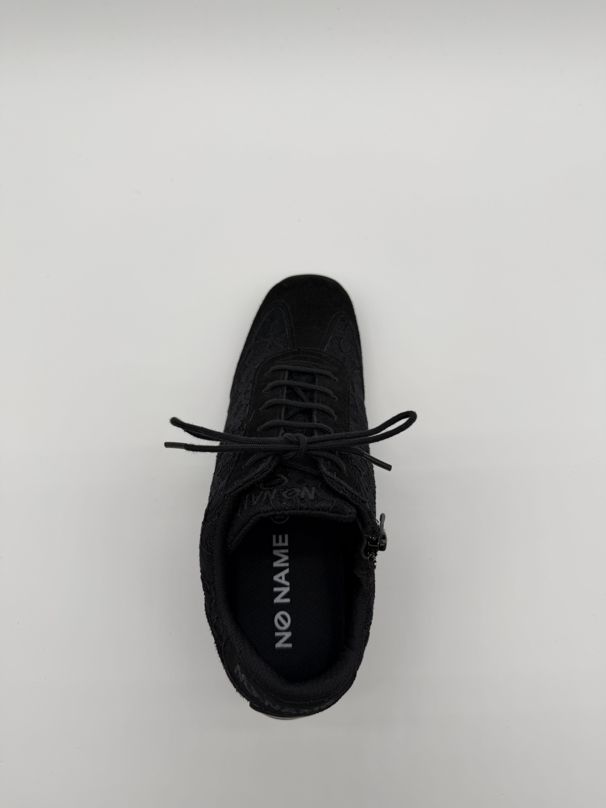 【NO NAME YOKO ZIP DENTELLE】厚底スニーカー レディース ブラック|5cmスクエアトゥ・レース素材・ [noname-YOKO-61943-BK]