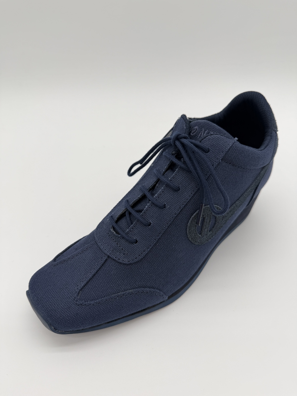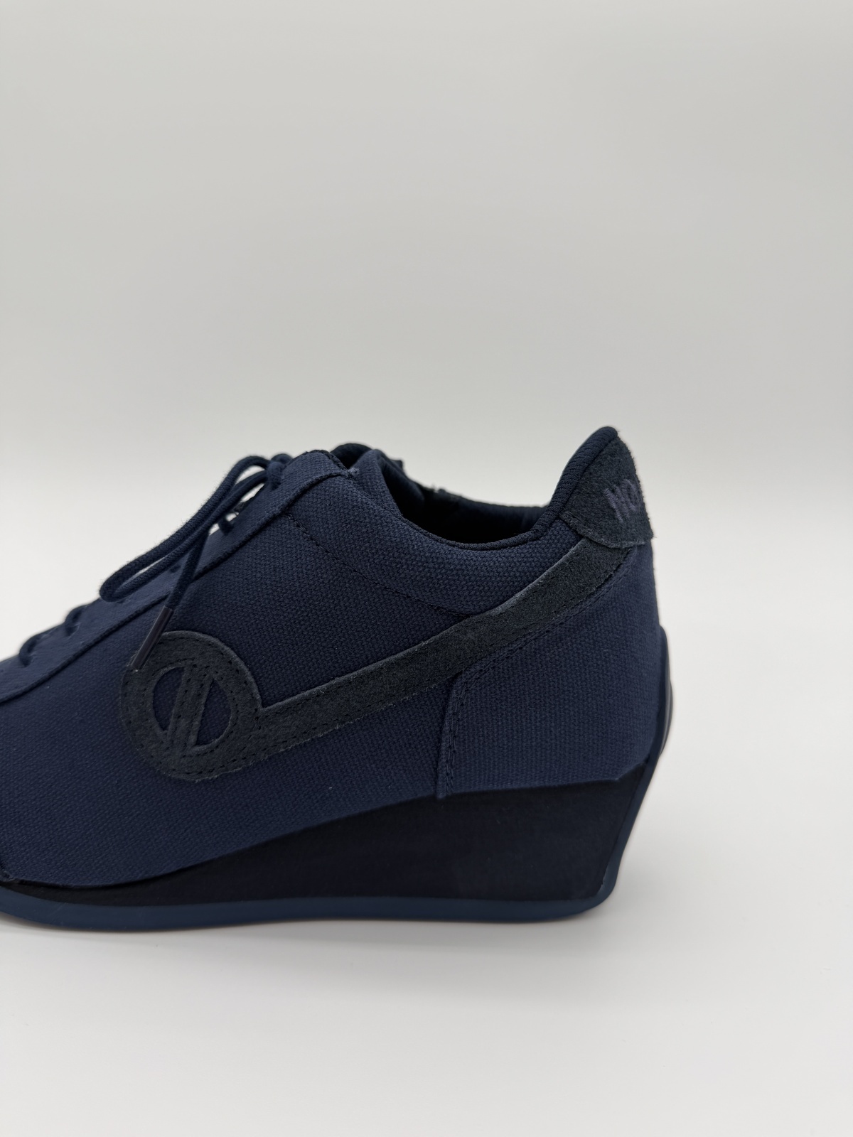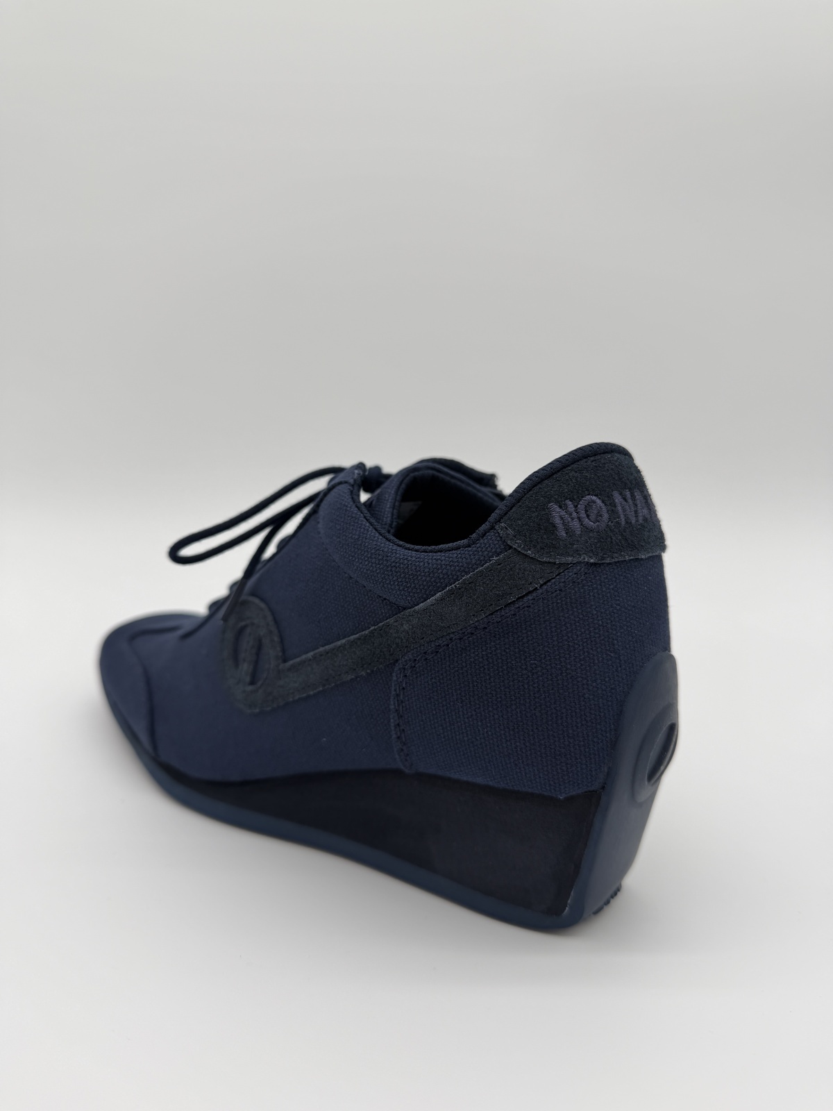 深みのあるネイビートーンでまとめられた、NO NAMEの厚底スニーカー「YOKO‑TWILL」。