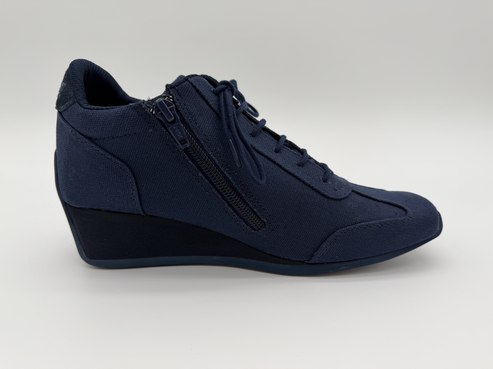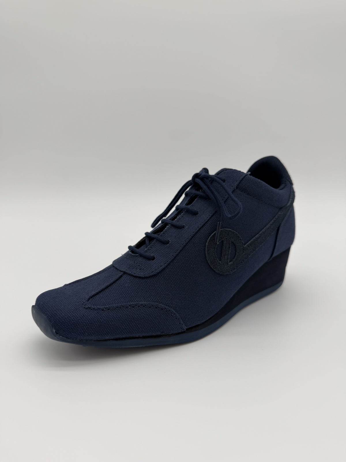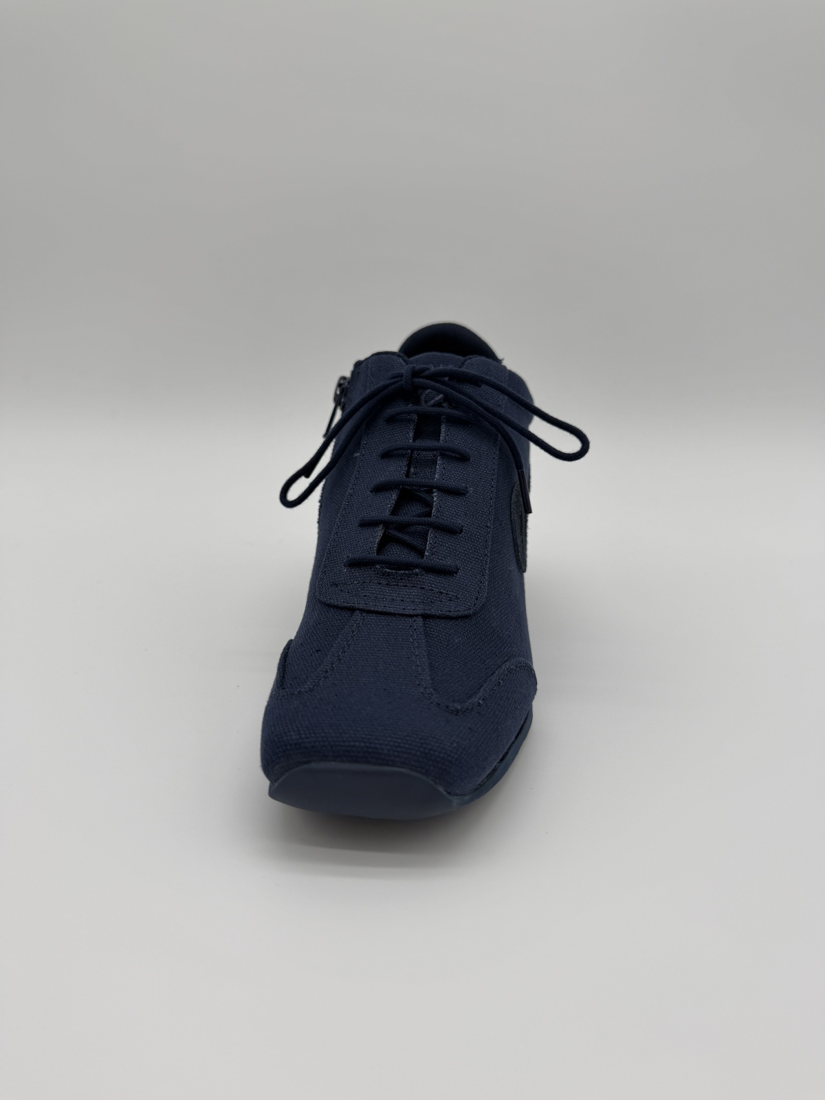 キャンバス×スエードの異素材コンビが上品に調和し、落ち着きのある足元を演出します。