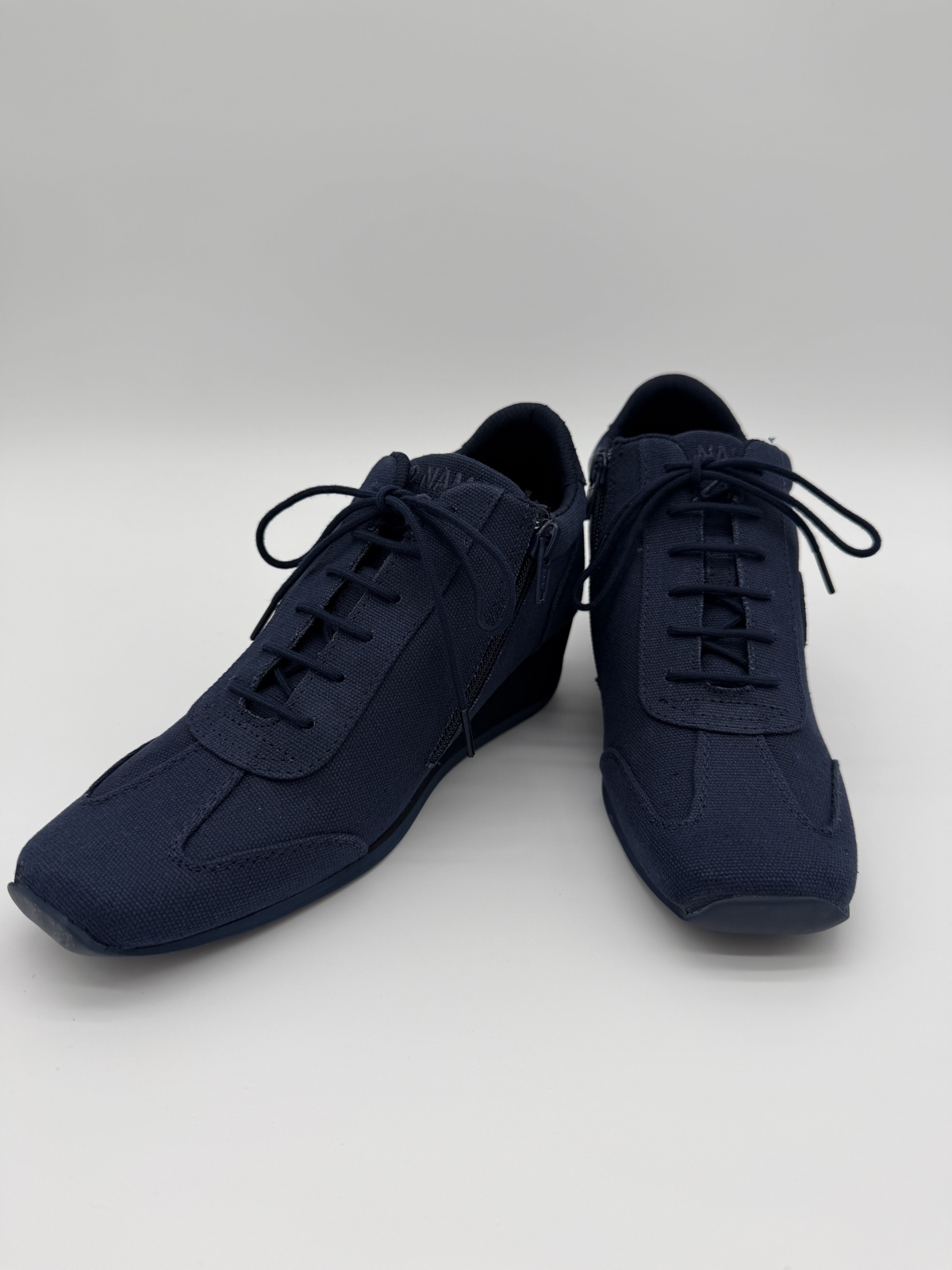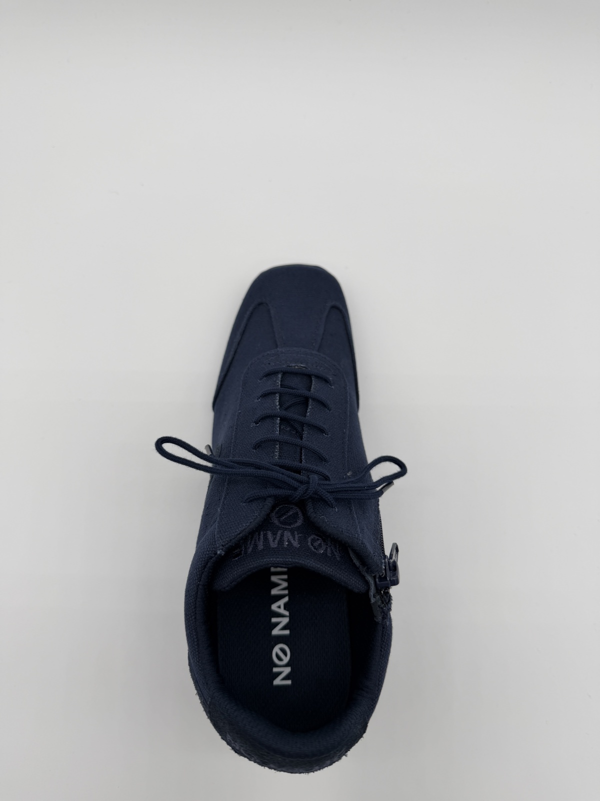 【NO NAME YOKO ZIP TWILL】厚底スニーカー レディース ネイビー|5cmスクエアトゥ・コットンツイル・ ※先行予約